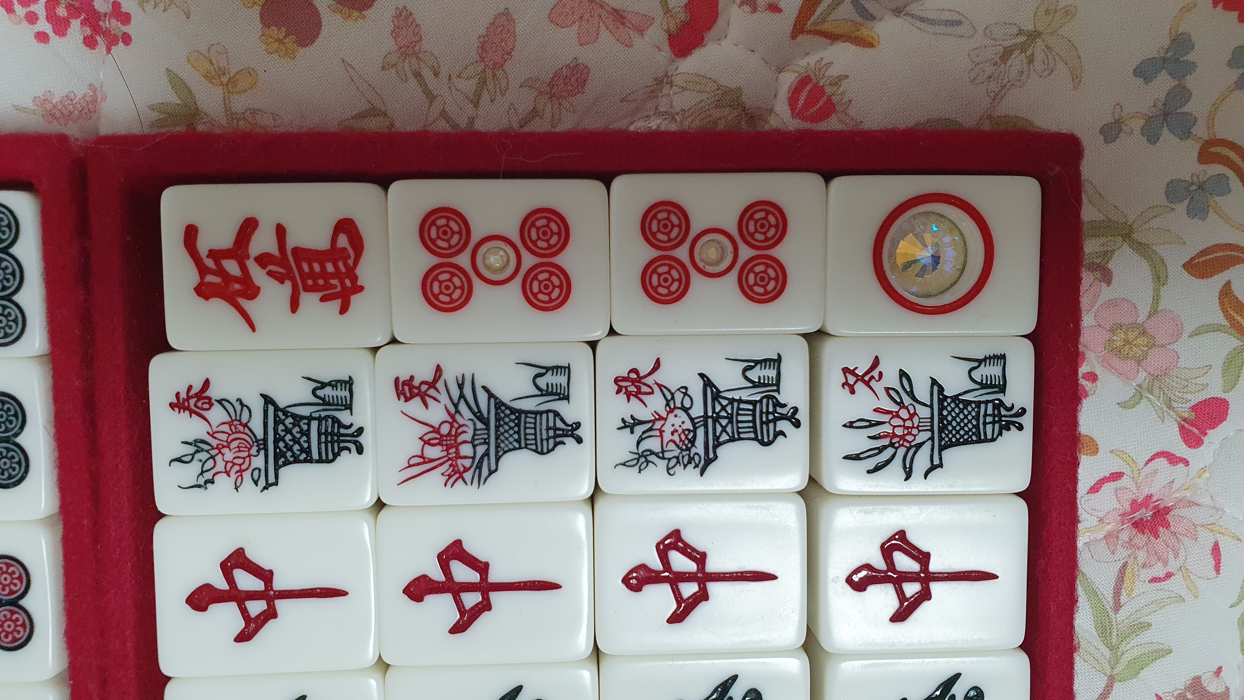 80년대까지의 수타 마작패들에 비하면 문양이 큰 편이며, 데카체의 조짐이 보이지만 아직 데카체라고 하긴 어렵다.
