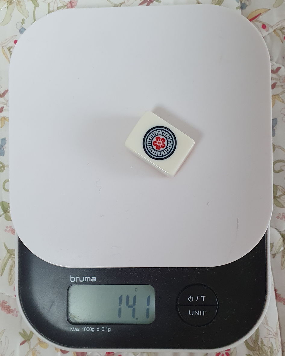 일반적으로 14g이면 마작을 치기에 모자람이 없다고 한다. 그 아래의 무게는 패가 슝슝 날아다니고 패산이 톡 치면 무너지기 때문이다.