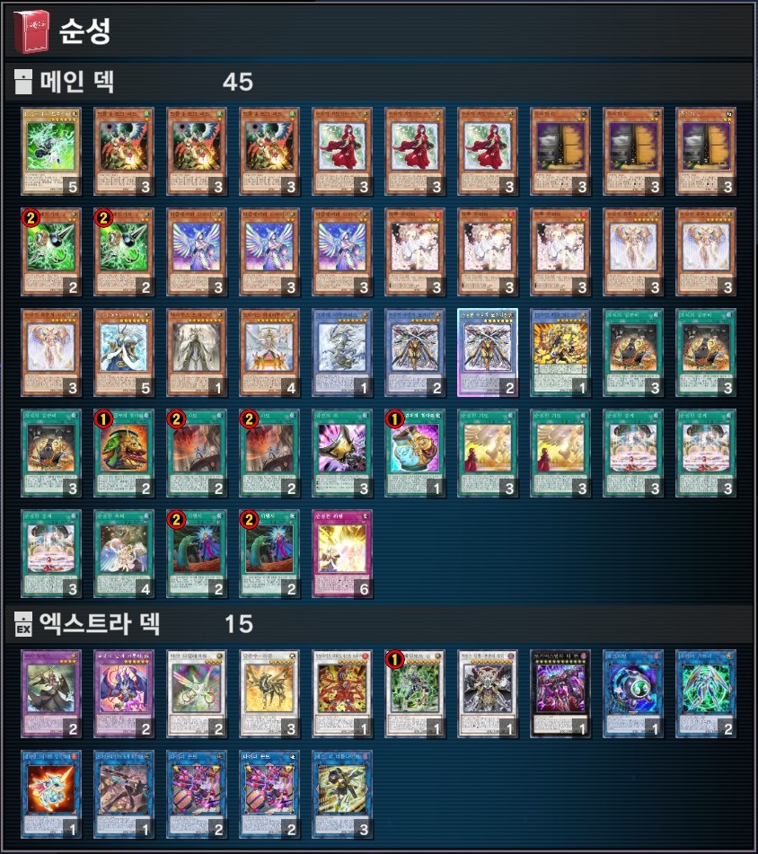 다만 천저축은 원래도 엑덱이 빡빡한데 엘프 + 추가 누토스 투입은 역시 부담스럽게 느껴진다. 굳이 뭔가를 뺀다면 티폰이나 몬드 한 장 정도?
